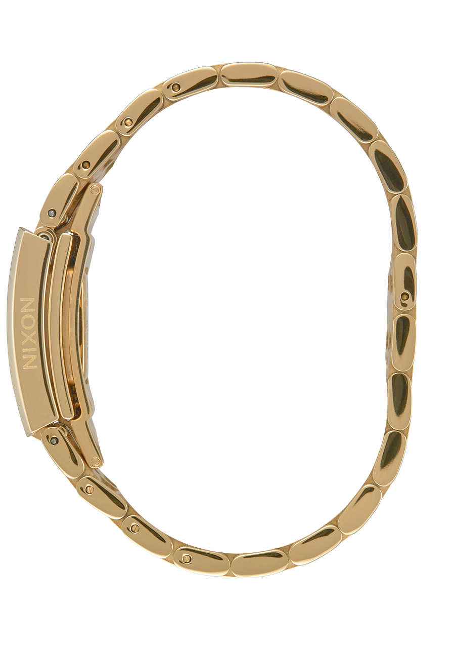 23mm stainless steel case with a 30 meter / 3 ATM water rating. Includes a hardened mineral crystal, polished crown with exaggerated grooves and Nixon wings etched into the side. Comes with a stainless steel screw down caseback.