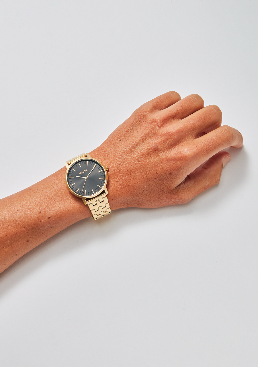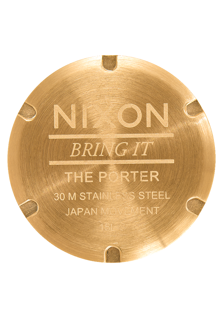 The Nixon Porter features a custom stainless steel case and bracelet. The watch is designed for everyday durability, with a hardened mineral crystal, double gasket crown, and screw-down stainless steel caseback for enhanced protection.